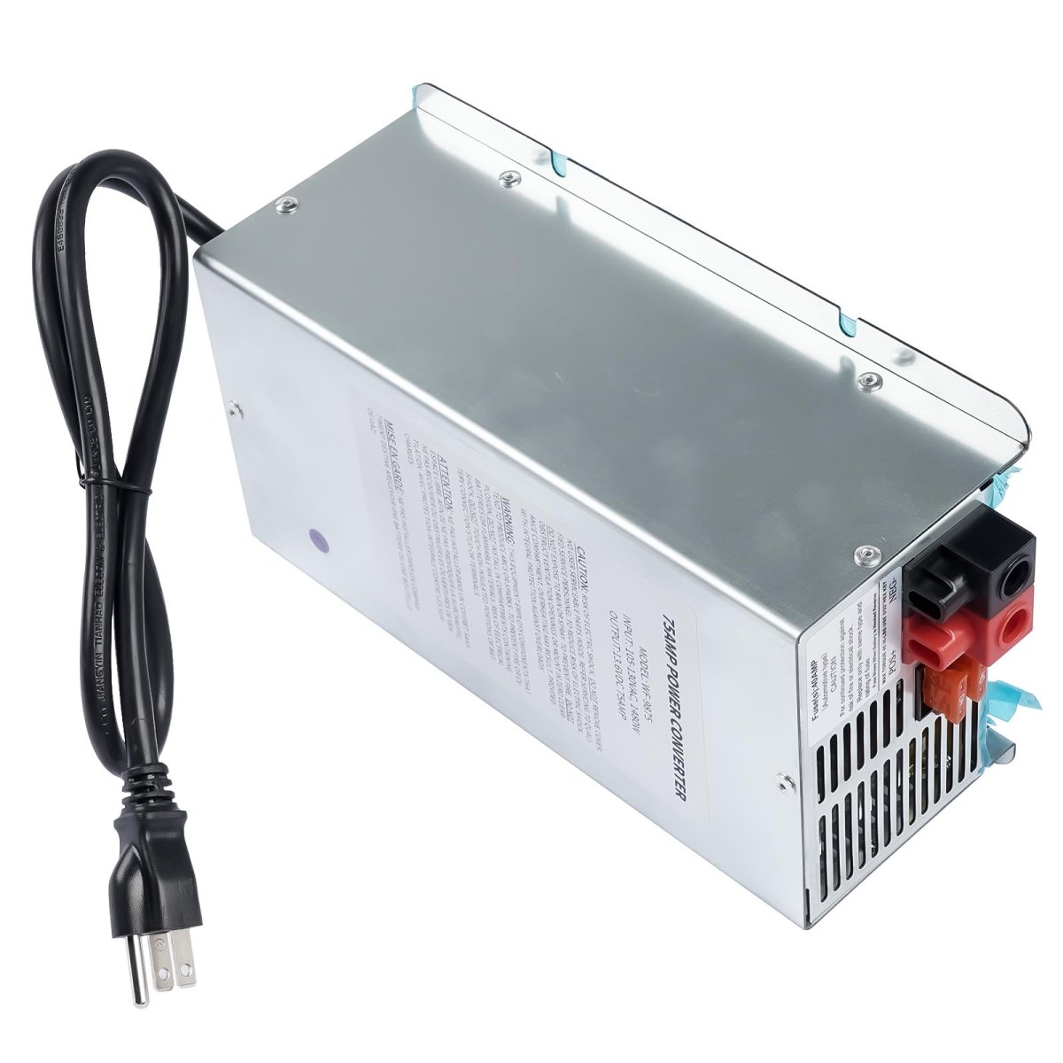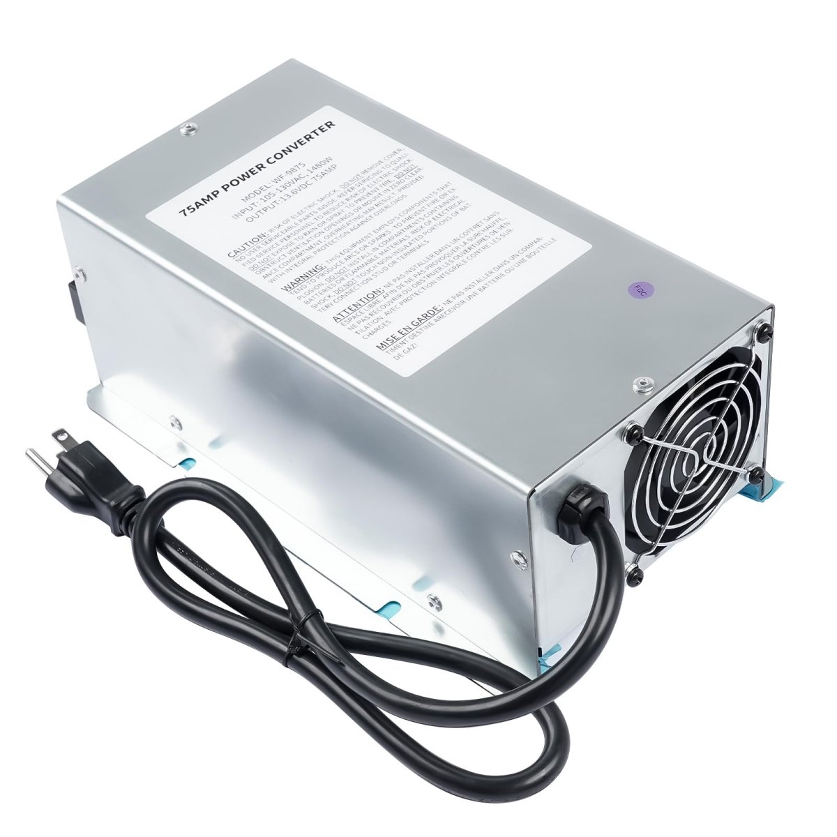 Advanced Power Source Solution: The versatility of the converter is widely used in various recreational vehicles such as RV, trailers and campers, ideal for powering a variety of electronic devices and appliances. The WF-9875 model provides 75 Amps of clean, reliable DC power while providing a convenient, long-term option that eliminates the hassle of replacing the entire unit.. Advanced 3-Stage Charger: Three nominal voltage output modes are suitable for Lead Acid and Lithium-Ion Batteries, replacing any single-stage converter. Our converters can meet the various charging needs of the RV while protecting your battery and extending its service life. Upgraded cooling fans run only when needed, ensuring quiet operation for better cooling and efficiency.. Auto-Detect & Accurate Charging: Auto-Detect technology will identify the battery type and chemical composition, and automatically adjust the charging mode. Accurately charges your battery, eliminating the risk of overcharging and undercharging. At the same time, the converter will not interfere with TV, radio or other signals, ensuring you enjoy a pleasant journey with your family and friends in the RV.. Technical Specifications: Input Voltage/Hz: 105-130 VAC, 60 Hz. Output Power: 75 Amps DC output. Float Mode (Trickle Charge Voltage): 13.2V DC. Absorption Mode (Nominal Voltage): 13.6V DC. Bulk Mode (Quick Charging Voltage): 14.4V DC..Other fine products