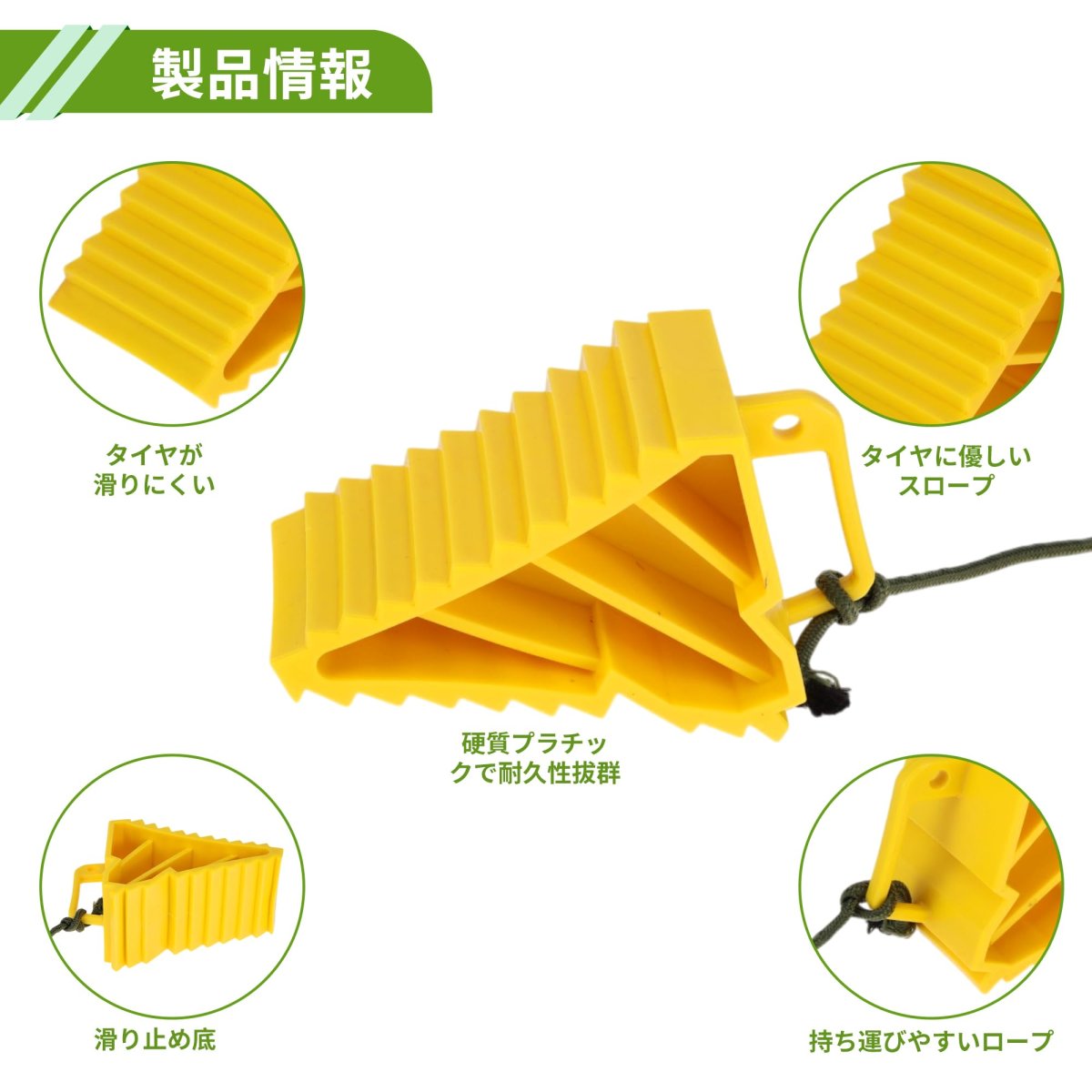 Durable Material: Constructed from high-strength PP, these wheel chocks are lightweight yet durable, offering excellent resistance to wear, corrosion, and impact, ensuring long-term reliability.. Enhanced Safety Design: The chocks feature a textured surface and an angled design to maximize grip and prevent slipping, providing added security for parked vehicles on slopes or uneven terrain.. Easy to Clean and Maintain: Thanks to the PP material, these chocks are easy to clean with water and mild detergent, making them low-maintenance and ready for repeated use in various conditions.. Universal Fit for Multiple Vehicles: Designed to accommodate a wide range of vehicles, including cars, trucks, motorcycles, and trailers, these chocks offer versatile use for both personal and professional applications.. Stackable for Storage: The compact and stackable design allows for easy storage in your vehicle trunk, garage, or toolbox, ensuring they are always accessible when needed without taking up much space..Other fine products