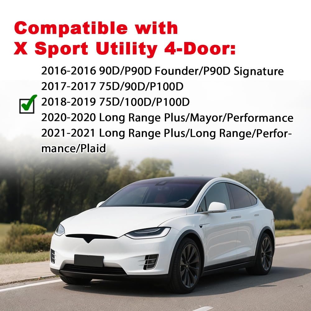 COMPATIBILITY:Compatible with 2016-2021 Tesla Model X.. MATERIALS: Fender Flares are made of impact resistant polypropylene with well-developed injection molding technology for excellent durability, which are durable and long lasting.. EXCELLENT PERFORMANCE:Defends Vehicle from Mud Scratches; Sand and Other Outer Damages to Wheels. Give your vehicle the appearance of an upmarket trim level with Fender Flares.. UV ANTI-UV: UV-blocking ingredients enhance the strength of fender flares, which are strong against cracking, warping and dust..Other fine products