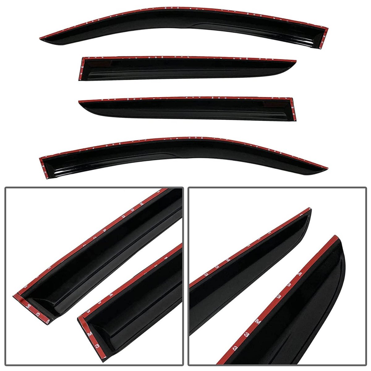 These window visors are made of durable ABS plastic and can be securely attached to your car windows. The car window rain guards are designed to reduce wind noise and keep rain and sun out while driving. Side window deflectors are a great addition to your car, helping to keep the interior cool in summer. The window deflectors are easy to install without any tools and provide good protection against the elements.Other fine products