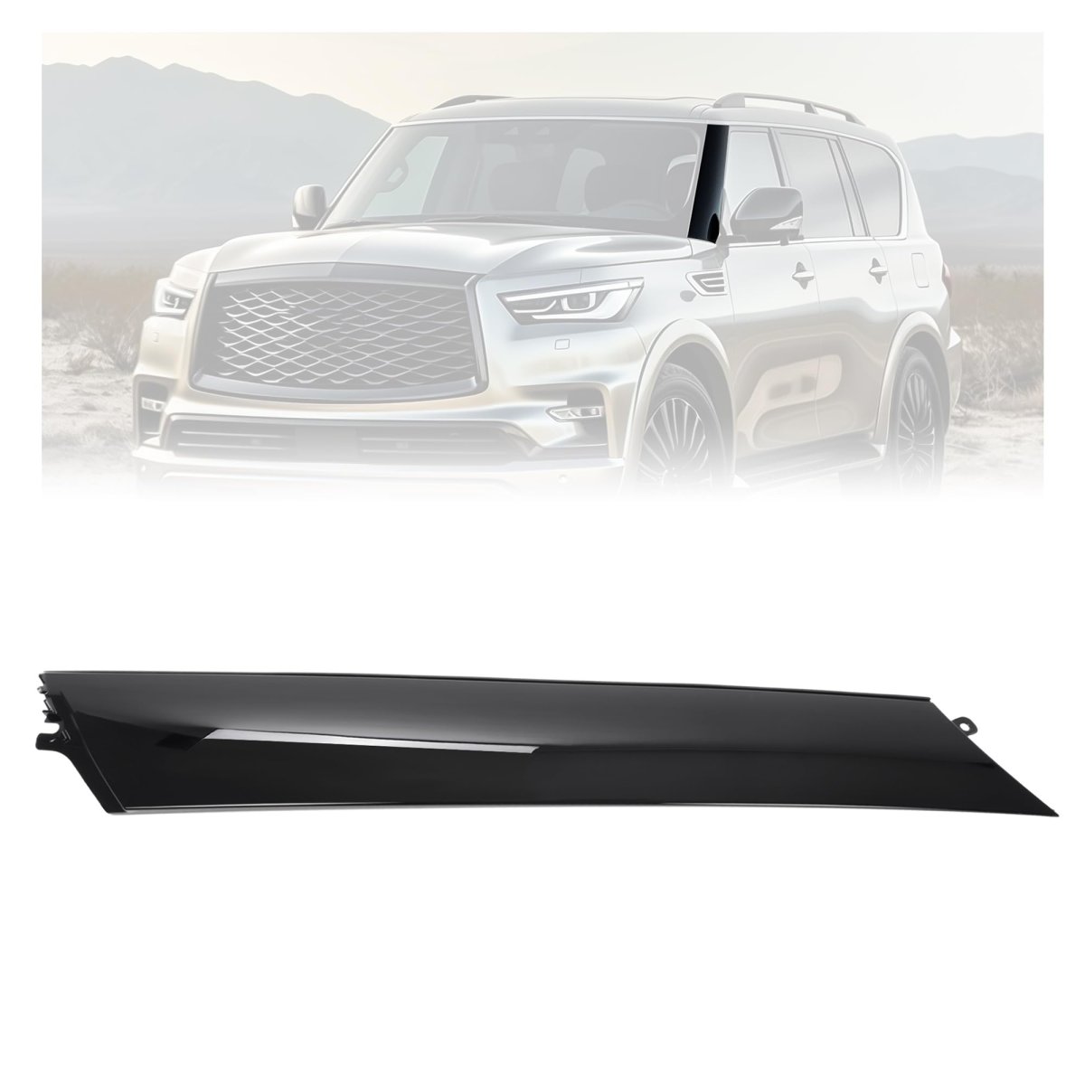 Product Compatibility: The front pillar finisher trim panel moulding is compatible with 2011-2013 Infiniti QX56, 2014-2023 Infiniti QX80, 2017-2022 Nissan Armada. Replacement for 76837-1LA0A, 76837-6JR0A, 768371LA0A, 768376JR0A (LH). Premium Material: Crafted from high-quality ABS Plastic, the molding trim offers excellent durability and long-lasting performance. It is built to withstand harsh weather conditions and won't crack or fade easily. Stylish Design: Designed to replace the deformed or detached pillar, this painted gloss black windshield A-pillar trim can restores a new look to the old pillars and enhance the overall appearance of the vehicle. Package Content: Installation instructions are NOT included. You will receive 1 x windshield a-pillar molding trim panel (left driver side) and mounting accessories. Simple Installation: The outer pillar trim can be easily installed with buckles (buckles are provided on the back). Direct replacement for old or damaged one, there is no need to use complicated installation tools.Other fine products