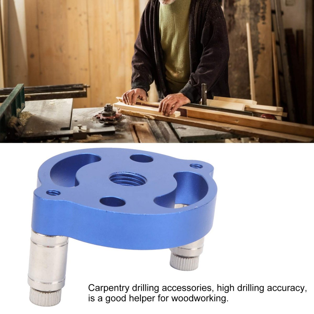 The handheld punch is used to punch holes in the wood and the edge of the wood so that the wood can be stitched together.. The two claws are convenient for quickly setting the punching center, and the maximum thickness of the punching is 46mm.. Made of aluminum alloy, anodized surface, durable and not easy to rust, wearresistant, and not easily deformed.. Can be punched three kinds of hole diameter, 6mm / 0.24in, 8mm / 0.31in, 10mm / 0.39in, can meet different punching needs.. Small size and lightweight, easy to carry and store. Carpentry drilling accessories, high drilling accuracy, is a good helper for woodworking..Other fine products