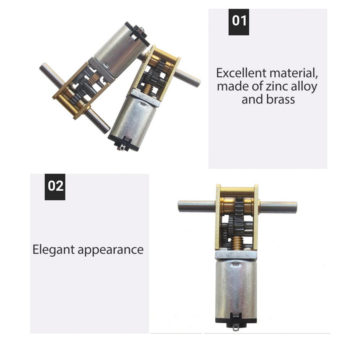BRUSH DC MOTOR: The micro gear motor is a brush DC motor with 3 layers of high density molecular paint coating, which is sturdy and durable. ALL METAL GEAR: The brush DC motor adopts all metal gear, which are resistant to high temperatures, have strong load bearing capacity. ADVANTAGES: The DC reduction motor has a speed of 15RPM, with high torsion, low noise, stable transmission, high efficiency, and good performance. WIDE APPLICATION: This double shafts worm gear motor is widely used in intelligent vehicles, robots, ovens, washing machines, and more. EASY INSTALLATION: Equipped with fixing mount, screws, and nuts, this DC gear motor is easy to install and disassemble, with stable and reliable structure.Other fine products