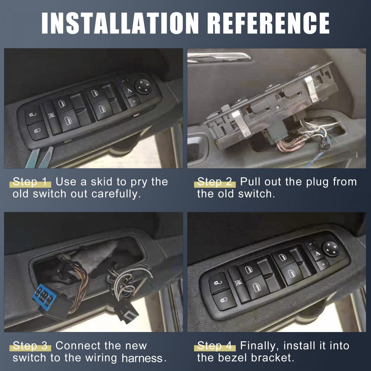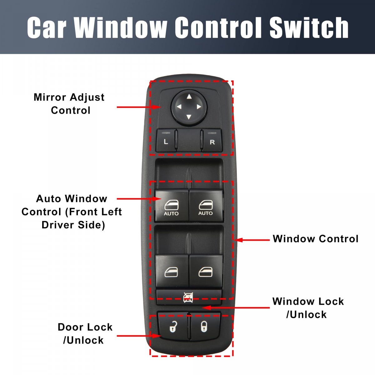 Fitment: for Dodge Grand Caravan C/V, SE, SXT 2008-2010 for Dodge Grand Caravan C/V, Crew, Express, Mainstreet, R/T 2011 for Dodge Journey Crew, for R/T, SE, SXT 2009-2010 for Dodge Nitro Heat, SE, SXT, Shock 2010-2011 for Dodge Nitro R/T, SE, SLT, SXT 2007-2009 for Jeep Liberty Limited, Renegade, Sport 2008-2012 for Chrysler Town & Country LX, Limited, Touring 2008-2010 for Chrysler Town & Country Limited, Touring, Touring L 2011. OE Part Number:4602533AB, 4602533AC, 4602533AD, 4602533AE, 04602533AF.. Placement on Vehicle: Front Left Driver Side.. The Window Switch Trim Assembly is made of plastic, durable for your car. Directly replace the old or broken power window switch, save you time. Easy plug-and-play connection to old wiring. When everything works properly, you press the button the window glass raises and lowers..Other fine products