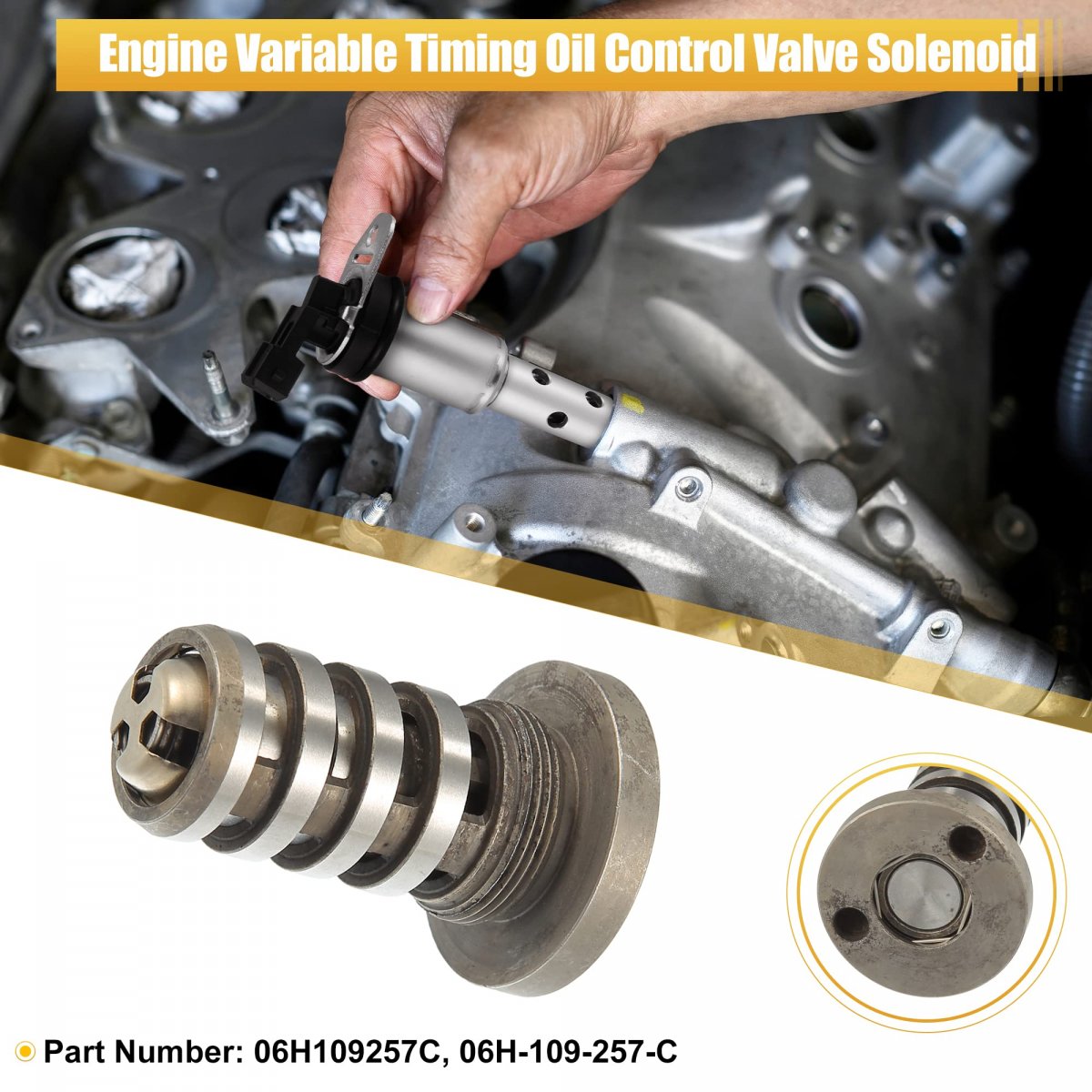 Fitment: for Audi A4 2.0L 2009-2016, for Audi A5 2.0L 2010-2016, for Audi A6 2.0L 2012-2015, for Audi allroad 2.0L 2013-2016, for Audi Q5 2.0L 2011-2017, for Audi TT 2.0L 2011-2015. Replaces Part Number: 06H109257C, 06H-109-257-C. Function: The variable valve timing solenoid is located in the cylinder head to control camshaft position and regulate intake (exhaust) volume.. Common signs of a bad solenoid valve include: 1. Poor engine idle speed. 2.Engine stumbles when climb hills or under load. 3. Check Engine Light (CEL) always comes on, common fault codes are: P0010 and P0011, P0013, P0014. Material: Made of durable material, fast response, good durability, promote combustion efficiency, energy saving and economical, easy to install and clean..Other fine products