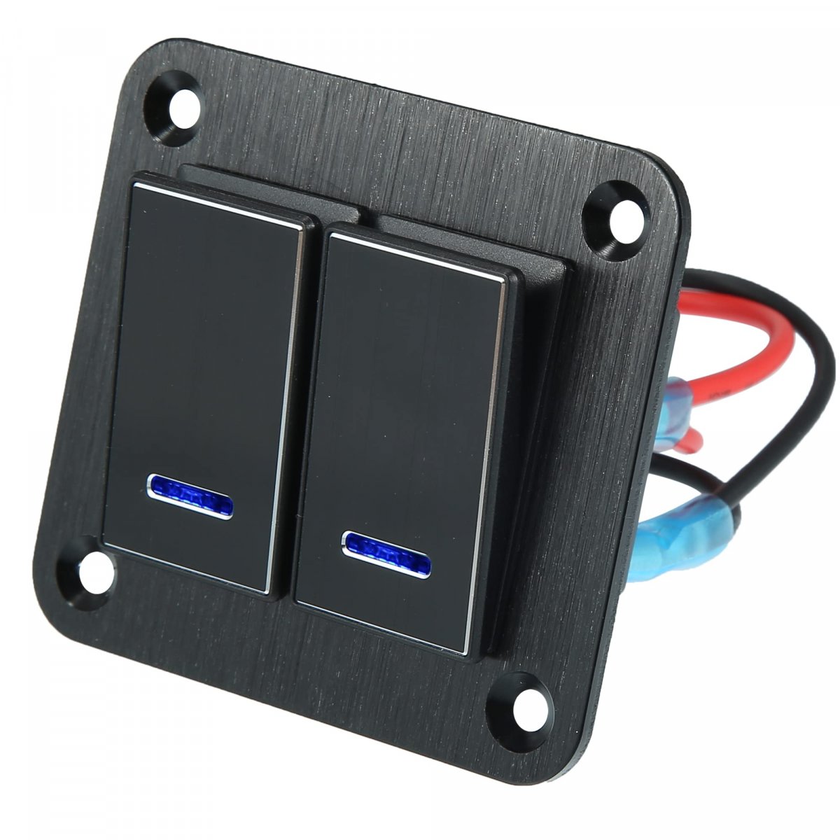 - X Autohaux 2 Gang Rocker Switch Panel 3 Pin On Off Pre-wired Toggle Control Waterproof Aluminum Alloy Blue Led Light Push