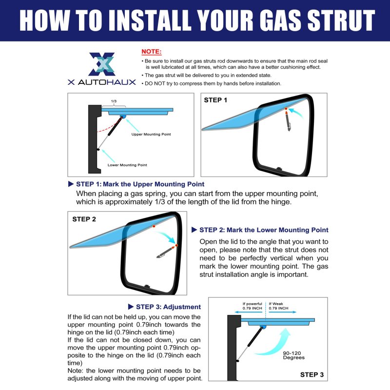 Extend length: 12 inches, compressed length: 7.5 inches; Force: 13Ib/58N/6kg per strut. The support weight of the gas spring is between 1115 lb (4967N).. Lift Support Strut is made of durable carbon steel material, strong and durable enough to support heavy covers and items.. Gas Struts are widely universal for car hoods, car rear hatch, RV car windows, RV car cabinet door covers, storage box covers, and so on.. Easy to install, measure the distance for installation, fix mounting brackets, and then press on the new gas spring on the installation position.. Package included: 2 Pcs Lift Supports Strut.Other fine products
