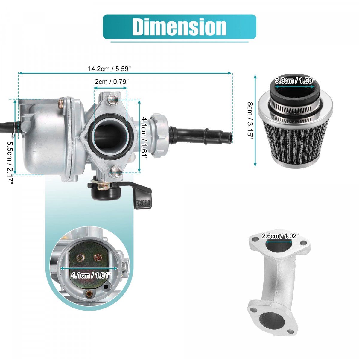 FITMENT: The PZ22 carburetor fit for most 4 Stroke 50cc 70cc 90cc 110cc 125cc Engine ATVs, Quads, Dirt Bikes, Pit Bikes, Monkey Bikes, Go Karts, Scooters, for Honda CRF50 CRF70(Chinese Models). for SSR, for WPB, for M2R, for Thumpstar, for Orion Pirt Bike, for Lucky MX, for Pitpro, for Pitster Pro, for DHZ, for Kazuma, for SunL, for Taotao, for NST, for Coolster, for Buyang, for Roketa Chinese Made ATV. PZ22 CARBURETOR: The PZ22 carburetor uses a 22mm opening in the diameter of the engine-side intake, it is the preferred size for machines in the 110cc to 125cc displacement range. Air Filter Mount Inner Diameter: 41mm / 1.61", Air Filter Hole Diameter: 38mm / 1.50", Mount Hole to Hole Diameter: 41mm / 1.61". FUNCTION: The PZ22 22mm carburetor with hand choke lever and air filter, to keep the dust and crud out, to ensure the carburetor works best when the air that flows into it is clean, it will enhance your engine's performance.. FEATURE: Made of metal, rubber, plastic material, it has the characteristics of impact resistance and scratch resistance, colorfastness, and durability. Easy to install, just direct replaces existing old carburetor. Give your atv or bike the new power and torque it really deserves.. PACKAGE INCLUDE: 1 Set Motorcycle Carburetor: 1 x Motorcycle Carburetor, 1 x Air Filter, 1 x Intake Pipe, 2 x Gaskets, 1 x O-Ring, 2 x Screws.Other fine products