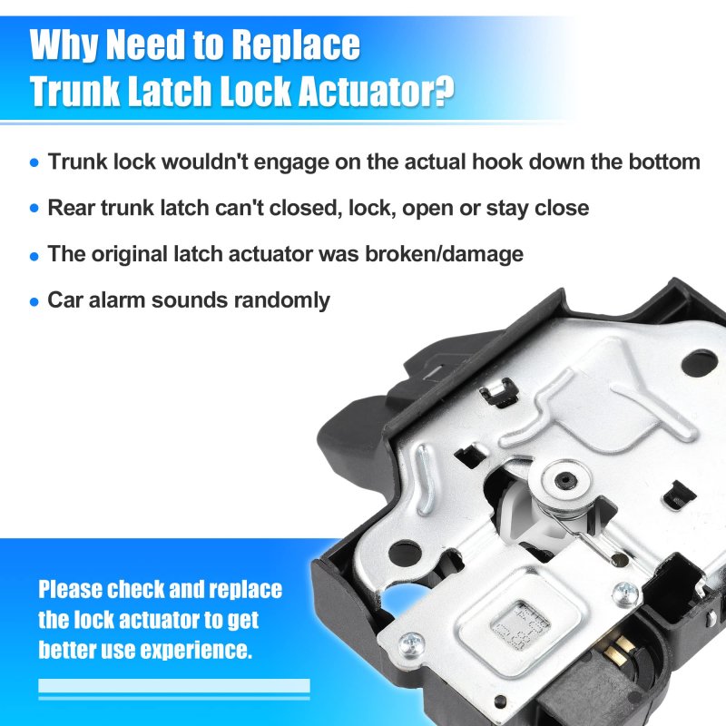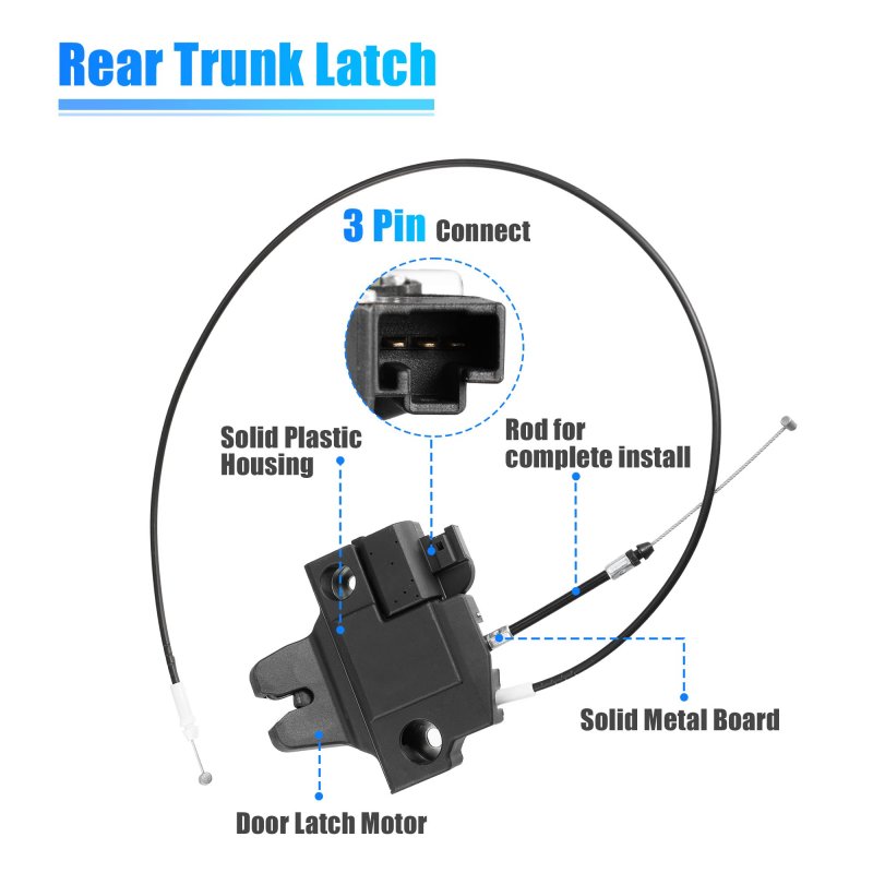 [Fitment] Fits For Lexus IS F 2008-2014 Sedan, For Lexus IS250 2010-2013 Convertible, For Lexus IS250 2006-2013 Sedan, For Lexus IS350 2010-2013 Convertible, For Lexus IS350 2006-2013 Sedan.. [Features of Trunk Lock Actuator] 3 Pin connector for more proper install, solid plastic housing and durable metal material to provide robust latch a long last life, wear-resistant and corrosion-resistant. Complete cable rod for more convenient install.. [Function] Directly replace broken or damaged rear trunk lock actuator motor to bring rear trunk back to work smoothly, resolve remote open/ not latch close/ lock/ unlock problems..Other fine products