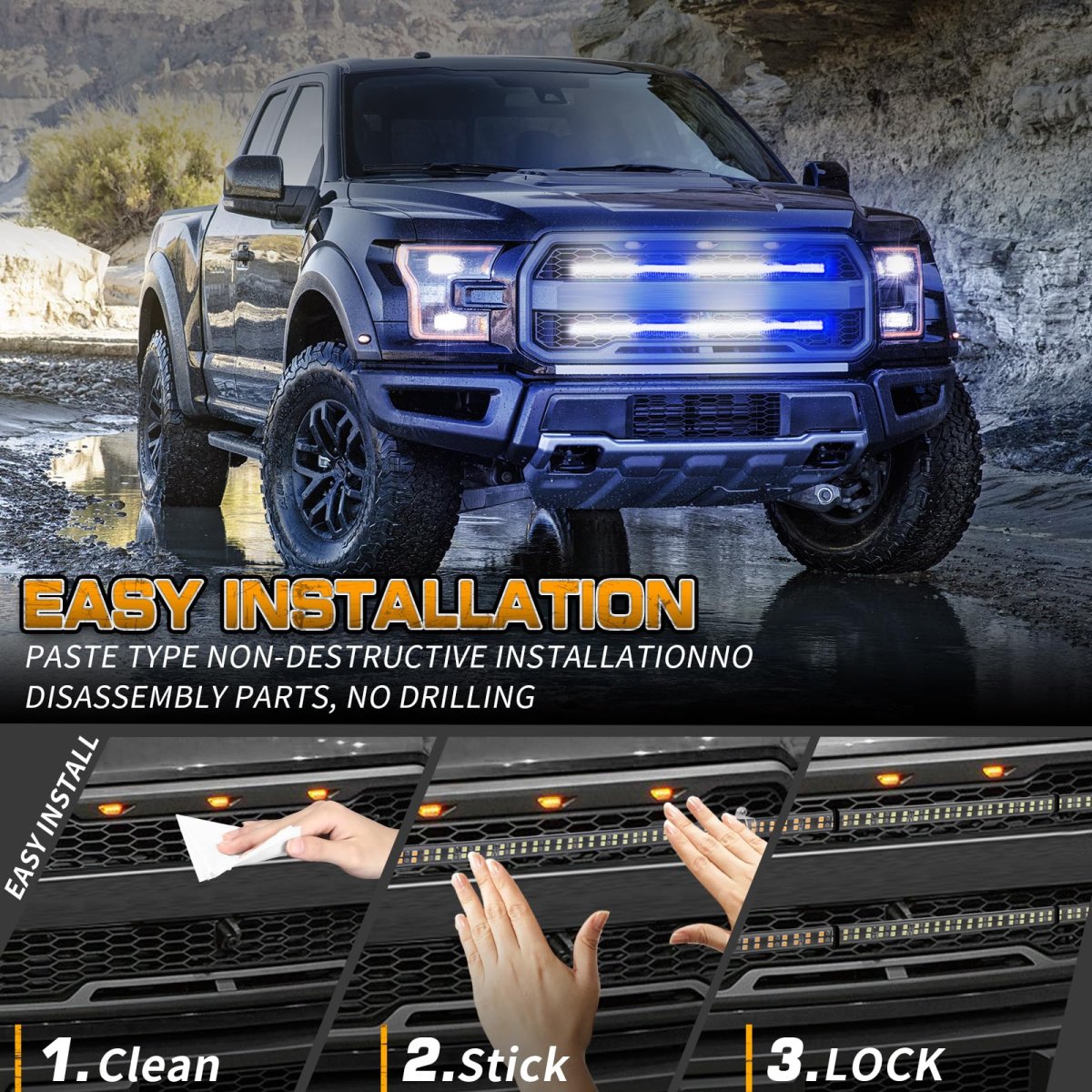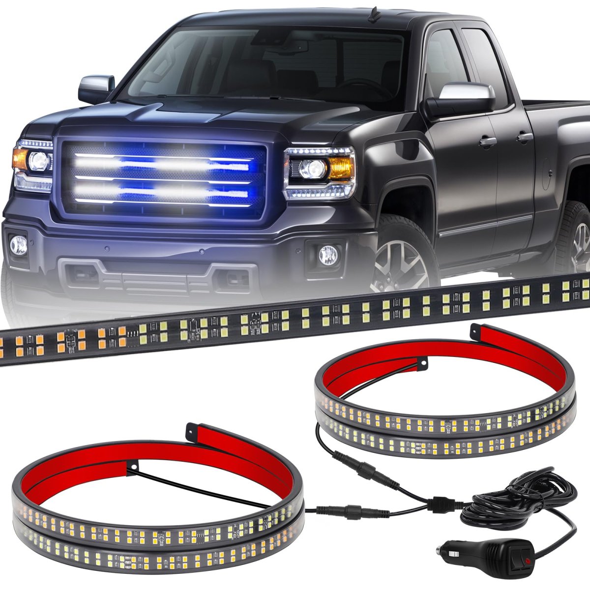 - Xridonsen 2pcs 24 Inch Truck Blue White Emergency Grill Lights Strip 288 Led Grille Strobe Flashing Warning Safety Waterproof