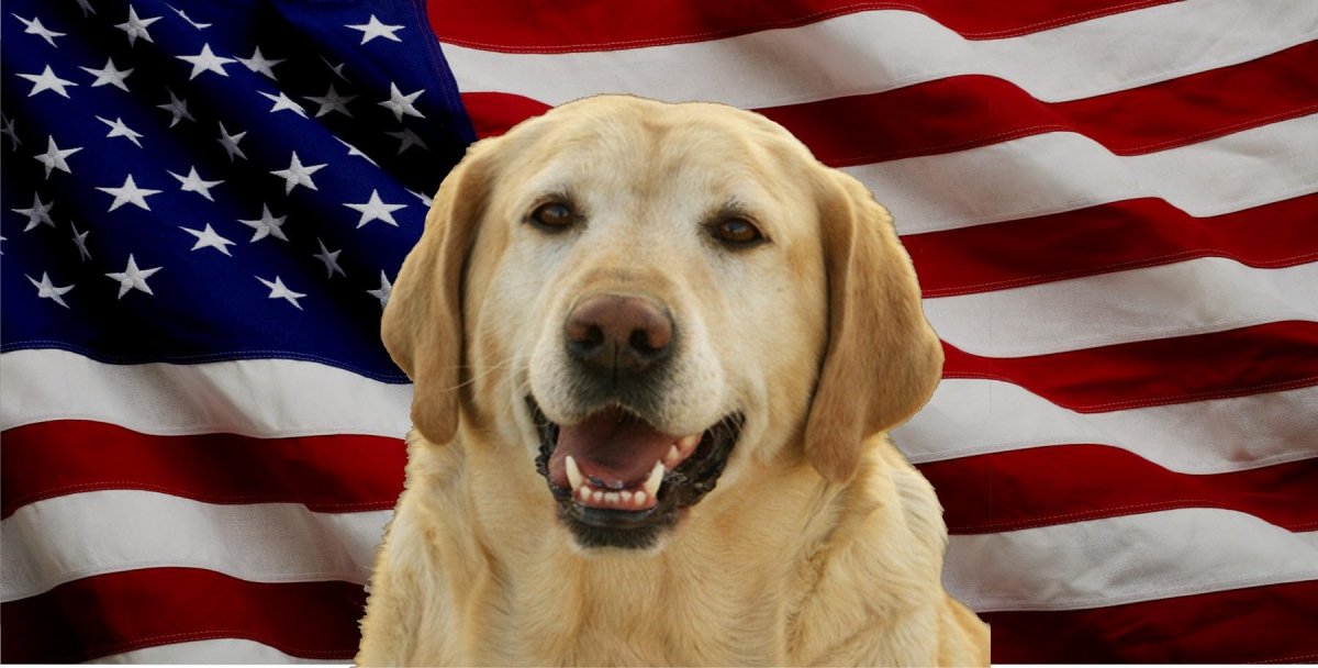 - Yellow Lab Dog On United States Flag Photo License Plate