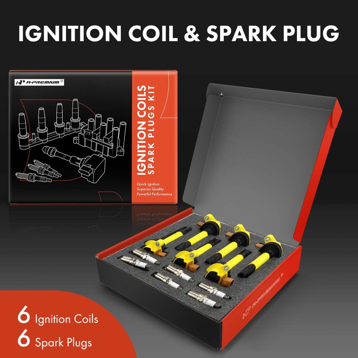 - Yellow Set Of 12 Ignition Coil Pack And Iridium Spark Plugs For Ford F-150 Explorer Transit-150 Transit-250 Transit-350 Taurus