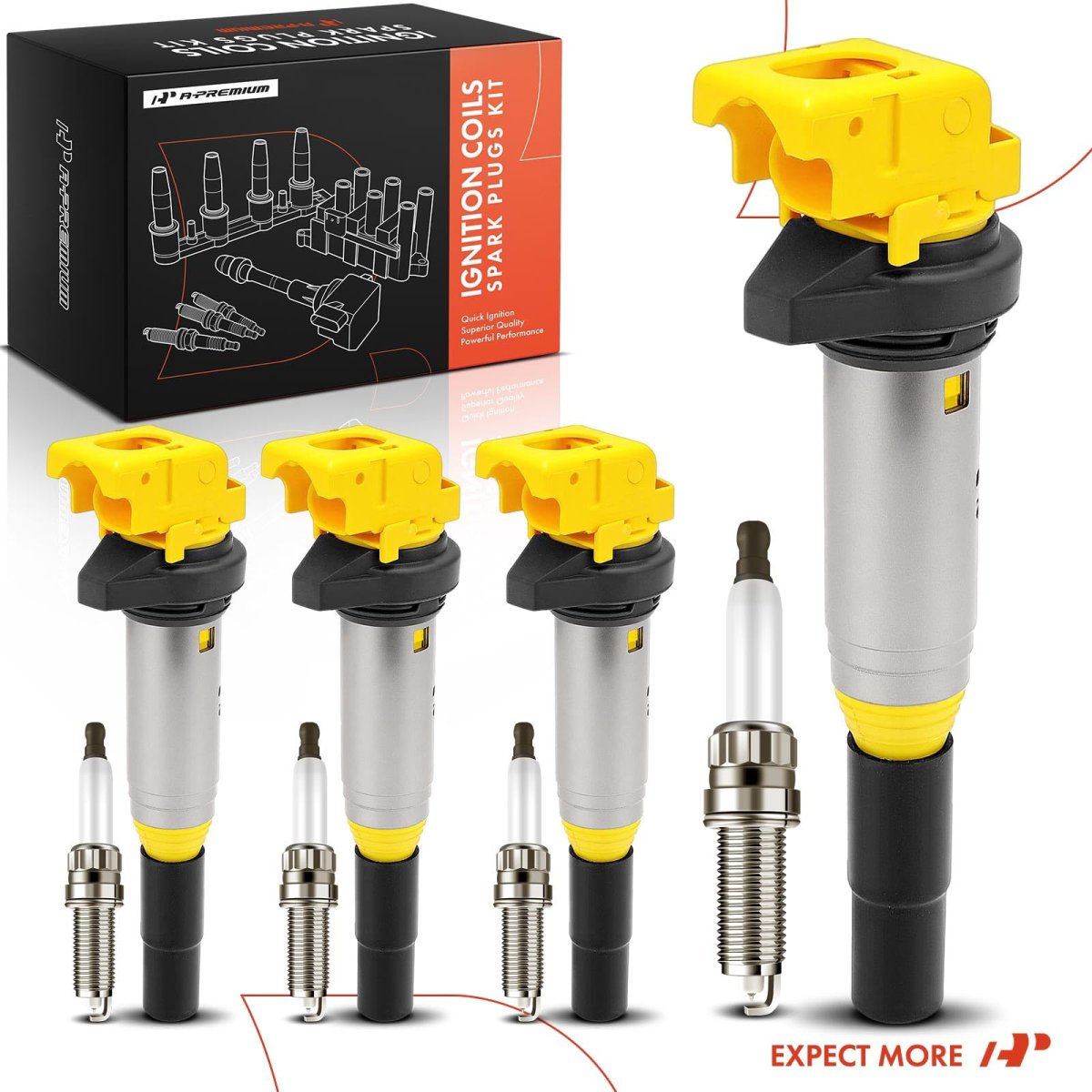 - Yellow Set Of 8 Ignition Coil Pack And Iridium Spark Plugs For Mini Cooper 2007-2013 Countryman Paceman 1 6l