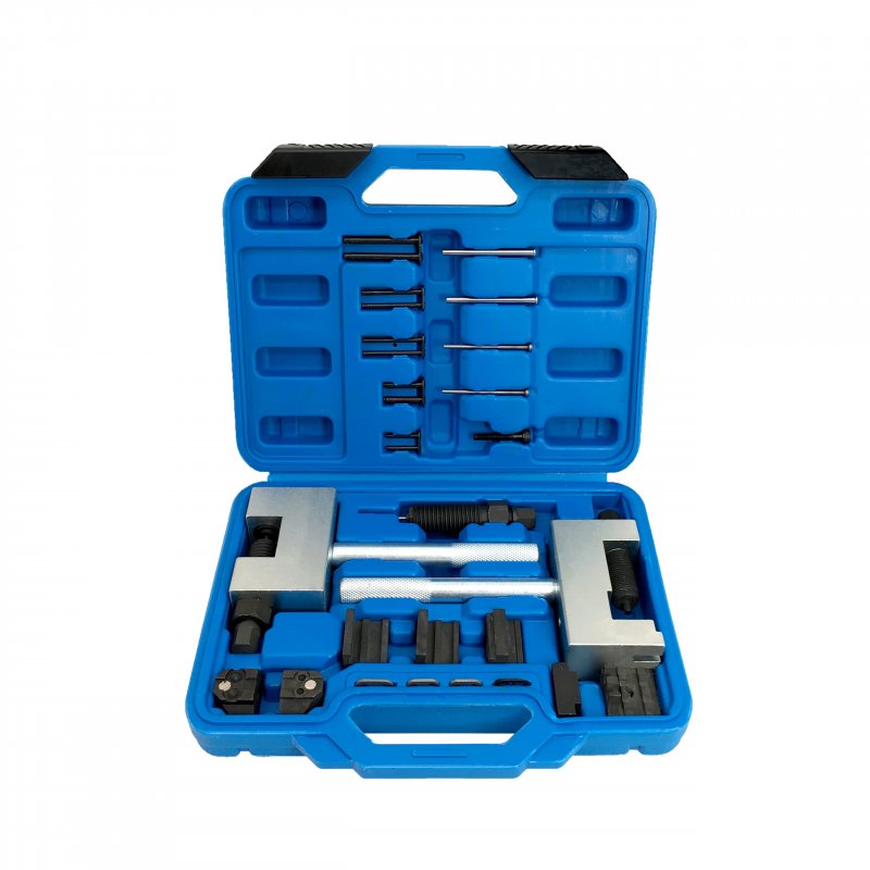Function:Timing Chain Separating and Riveting Locking Set Fit for the quick splitting and reconnection of the timing chain of Mercedes-Benz engines, suitable for double-row timing chains on Mercedes gasoline and diesel engines.. Necessary tools: The Breaker Assembly Tools Kit contains 24 chain breaker riveting tools, such as 7 different sizes of forging jaws, temporary assembly chain links and chain link removal tools. It is also suitable for timing chain separation of a small number fit of Chrysler and Jeep models. Separate and assemble from the assembly timing chain.. Range: Compatible with Mercedes-Benz 271, 272, 273, 274, 615, 616, 617, M102, M103, 116, 1.7D, 2.1D, 2.2D, 2.7D, 3.0D, 3.9D, 4.0CDi engines , double positive Time chain and 4mm chain bolts are also compatible with Chrysler/Jeep 2.2D, 2.7D and 3.0CRD diesel engines.. The perfect tool: This timing chain separation tool has undergone many real vehicle tests to ensure that its quality and size are very consistent with the model. At the same time, it makes it easy to clean the split of the old timing chain and the precise riveting on the new chain..Other fine products