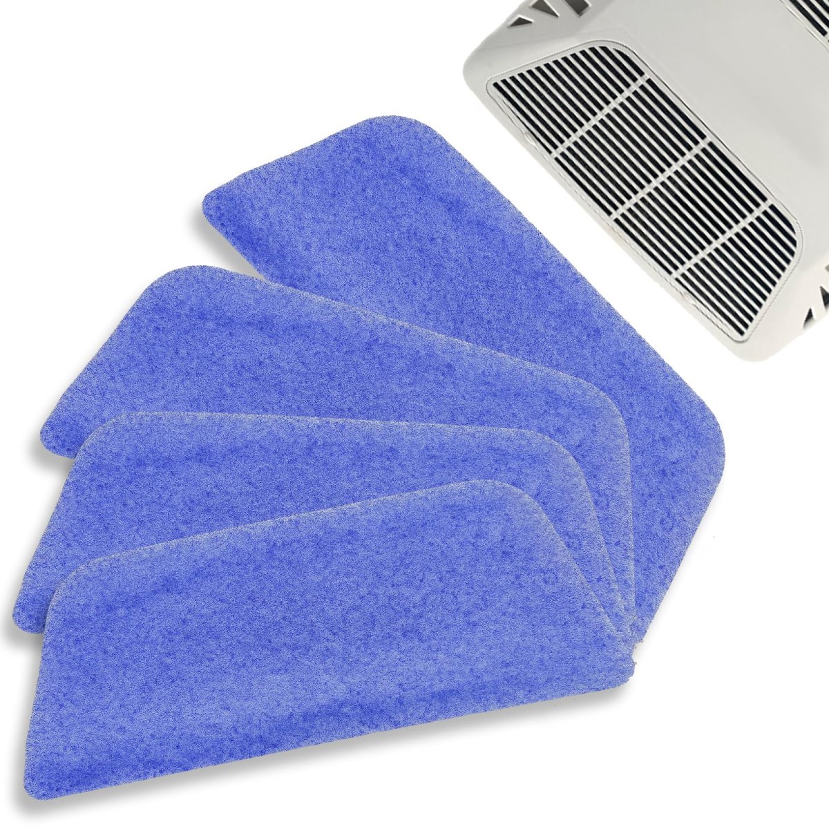 Fitment: Replacement for Coleman mach RV air condition units. Easy Installation: Exact fit and fast installation. The blue side is the air inlet surface, and the white side is the air outlet surface. Material: Made of advanced composite air filter material different from ordinary foam. It will well filter the dust, hair, smoke,etc.This also helps to extend the life of your unit. Suggestion: It is recommended that you replace the filter every 90 days. Timely replacement of the filter will help it to be in the best condition. Package Included: 4 Piece of RV AC filter.Other fine products